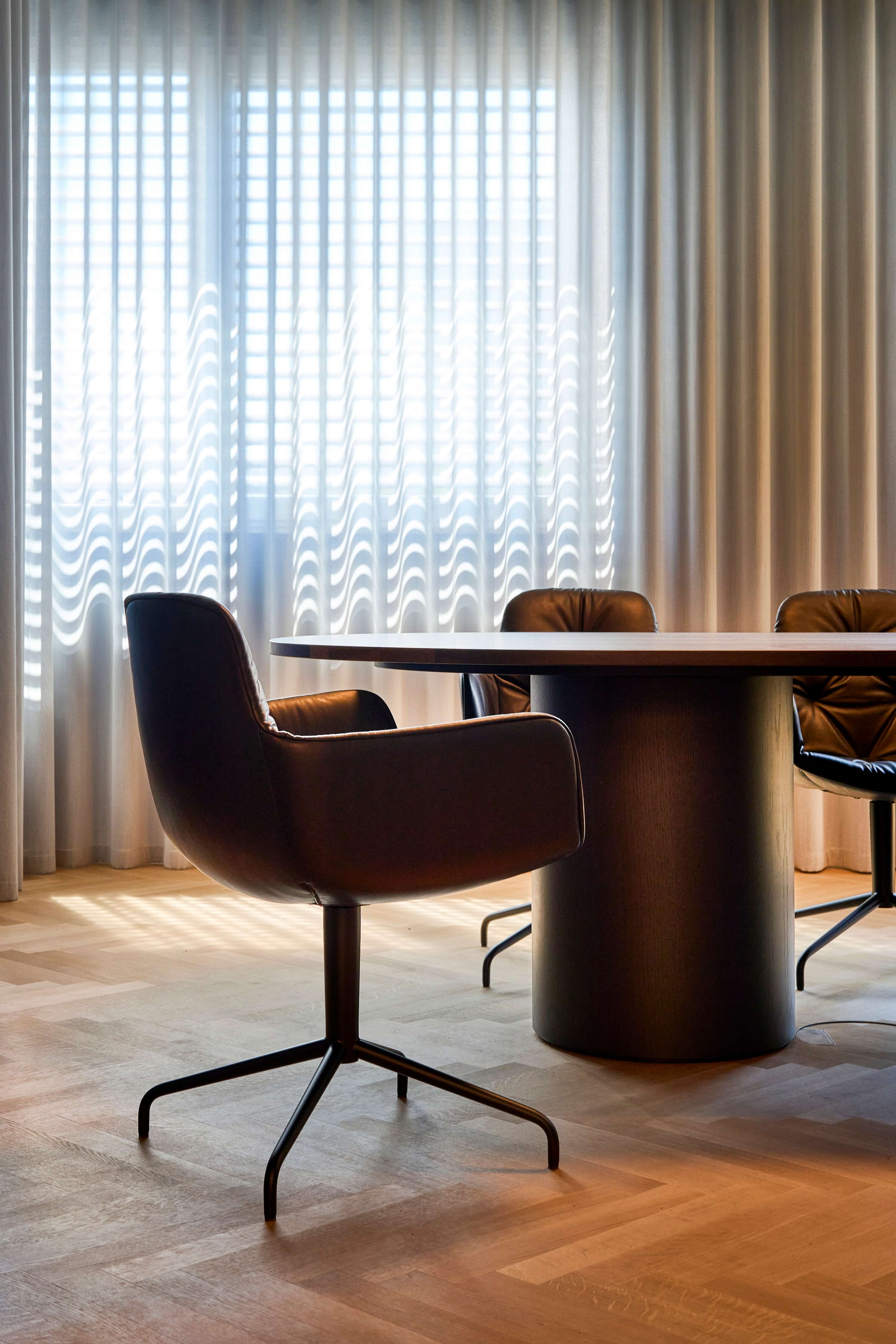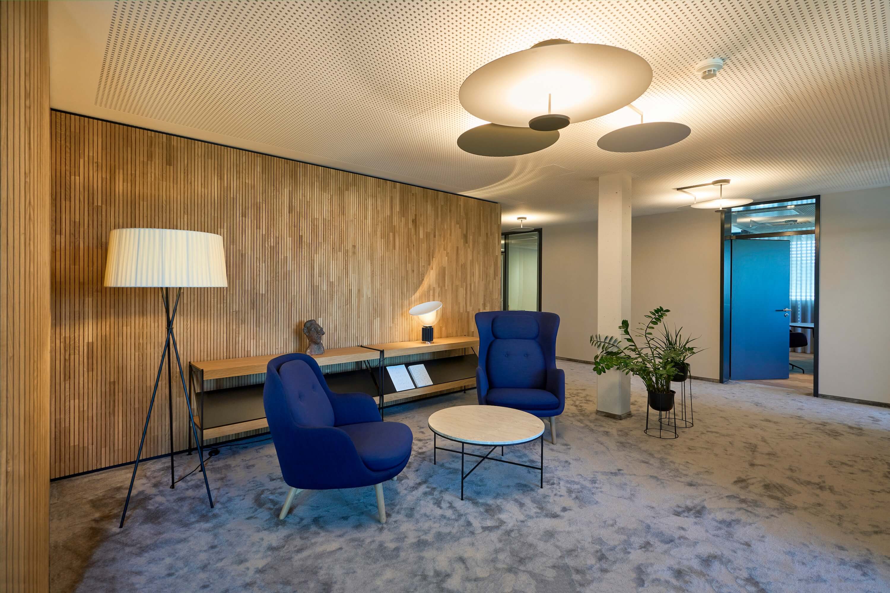 Bei der Steuerung großer Familienvermögen und individueller Nachfolgeregelungen steht der Wunsch nach absolut diskreter und seriöser Beratung im Vordergrund. Dies auch in eine passende Möblierung zu übersetzen, die sich elegant, zeitgemäß, zurückhaltend und hochwertig zeigt, war die Herausforderung. Gelungen ist dies mit einer Wärme erzeugenden Farbgestaltung gepaart mit Möbeln in wohnlicher Anmutung.
