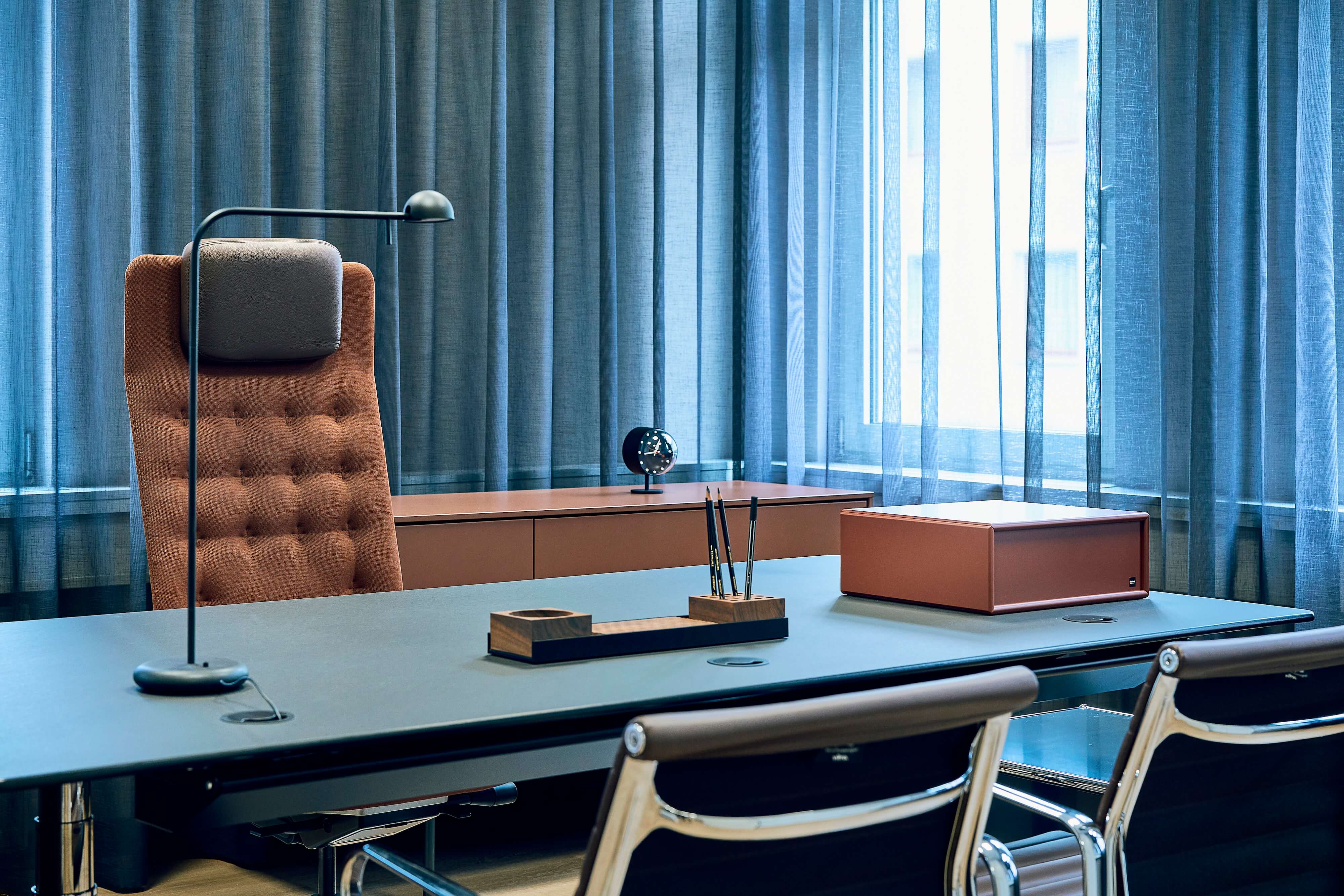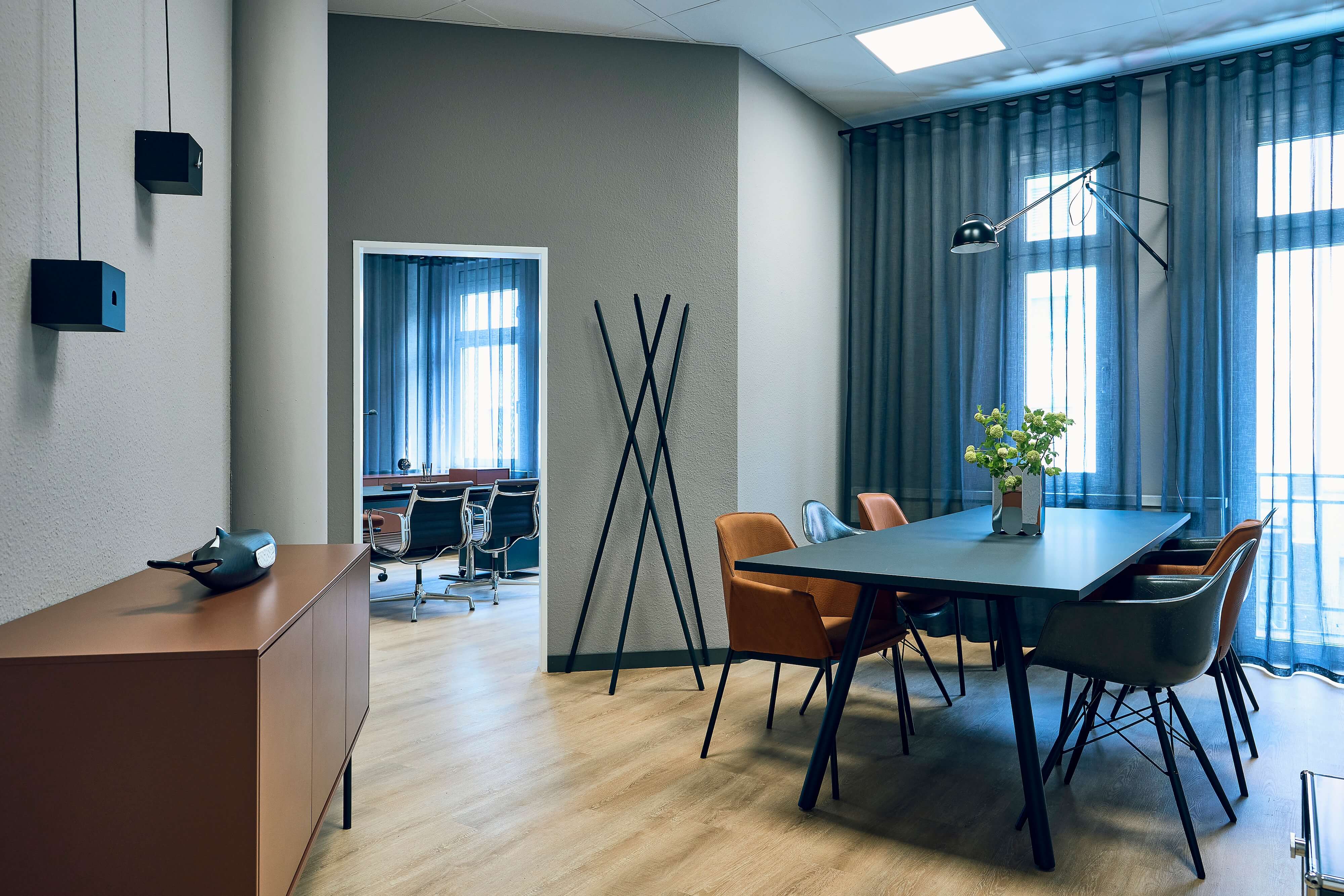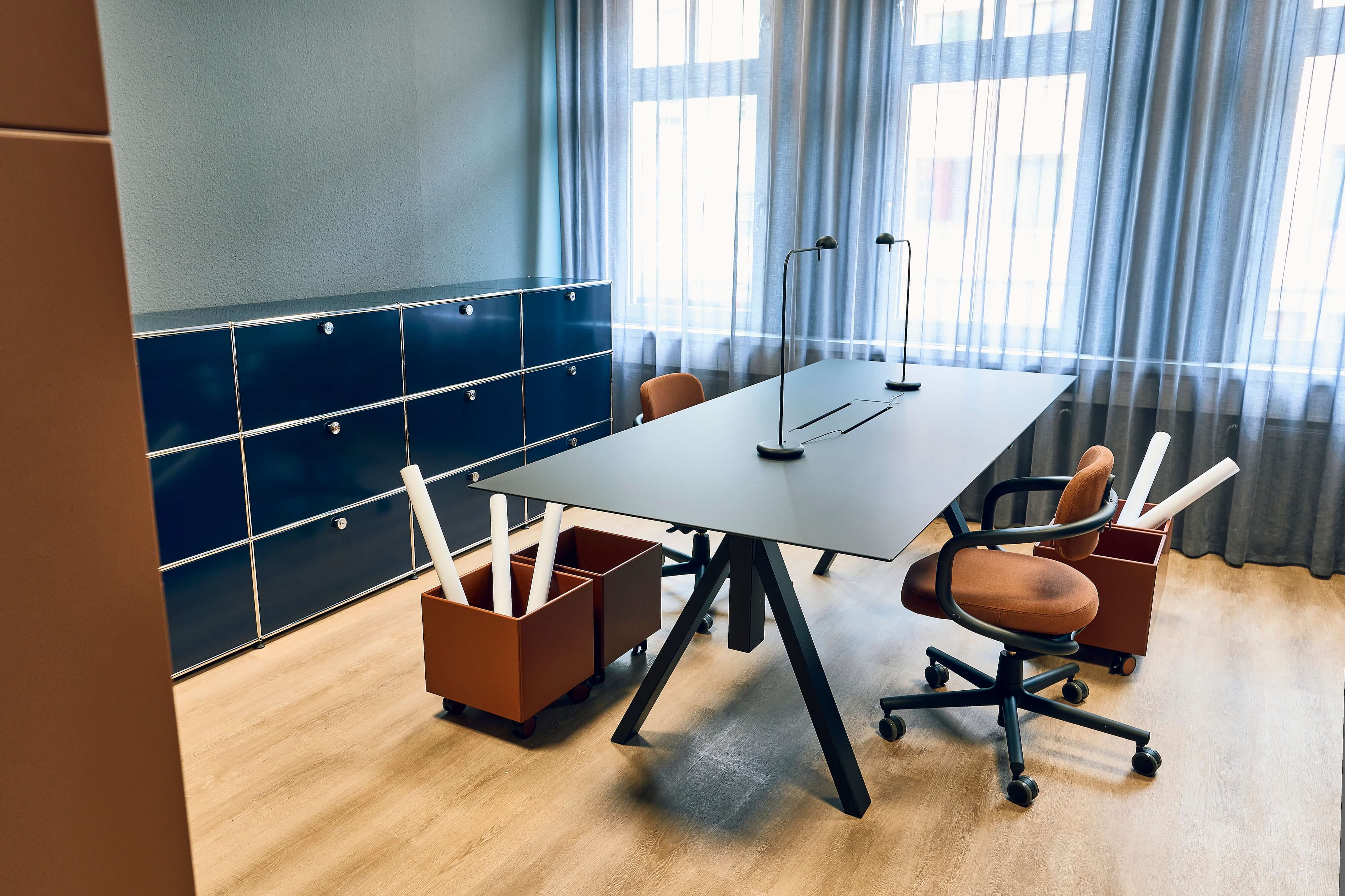 - Planungs- und Farbkonzept für gesamte Bürofläche, Lieferung der kompletten Möblierung inklusive Beleuchtung und Vorhangsystem